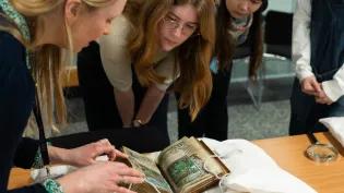 Visiting scholars and students can use the University’s Heritage Collections The University’s Heritage Collections span across manuscripts, art, early and rare printed books, musical instruments and much more. Our collections are used in teaching and research every day at the University, and can be consulted at the Centre for Research Collections (Main Library), New College Library (The Mound), St Cecilia’s Hall (Cowgate) and the School of Scottish Studies Archive & Library (George Square). To find out more about our collections and how to access them, visit https://library.ed.ac.uk/heritage-collections ECA HoA PG students and Bryony Coombs This article was published on 2024-11-28